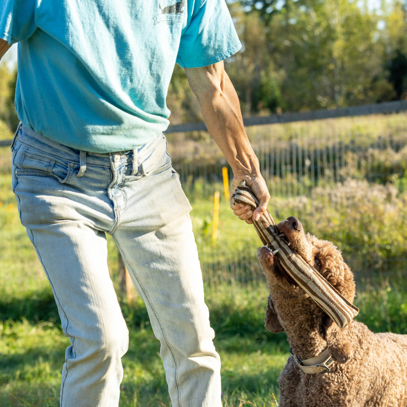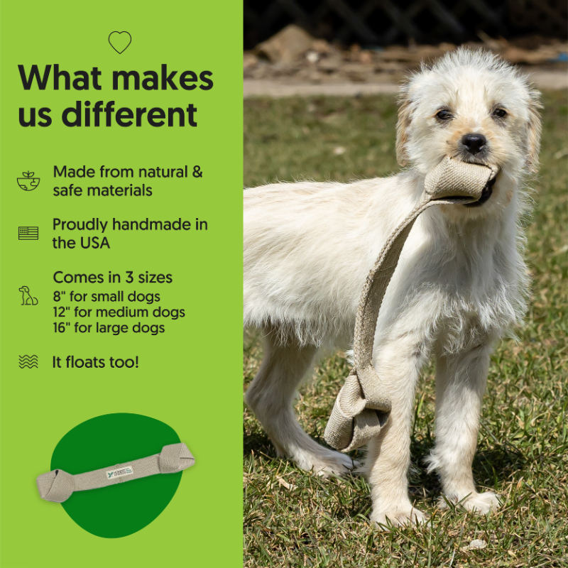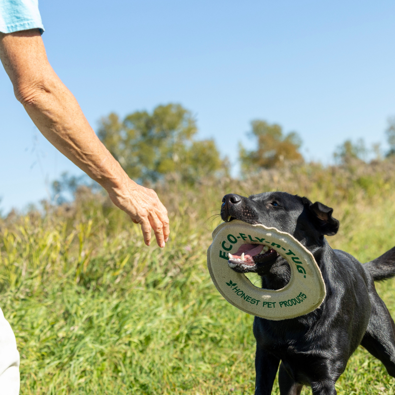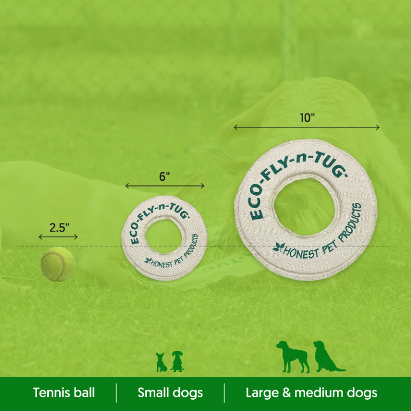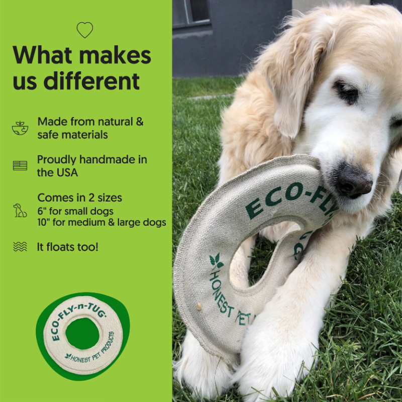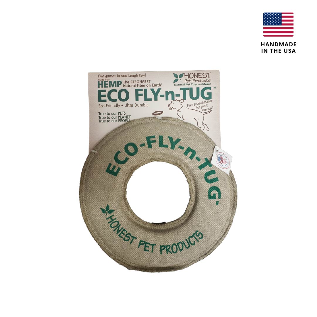 Introducing the Eco-Fly-N-Tug – the ultimate two-in-one toy for dogs who love to fetch and tug! Handmade in the USA...