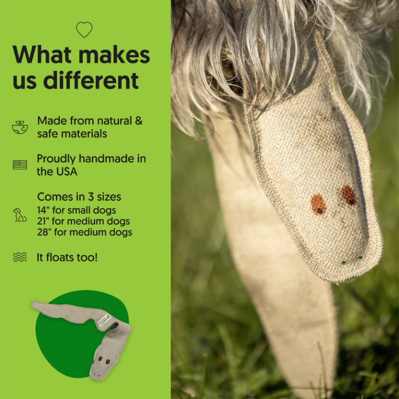 The Eco-Rattler is an eco-friendly, squeaky tug toy that brings out the wild side in your pup! Handmade in the...