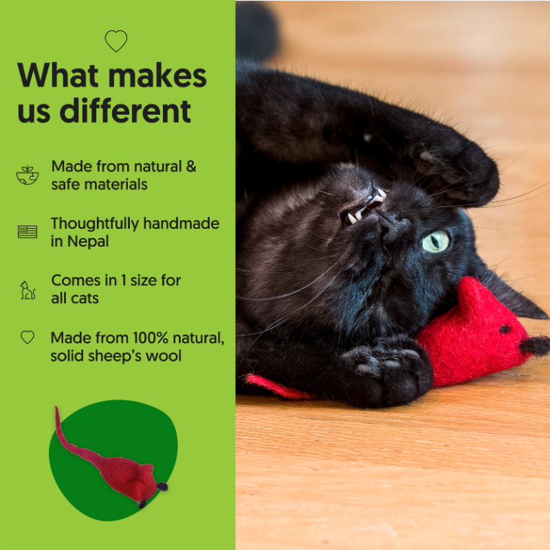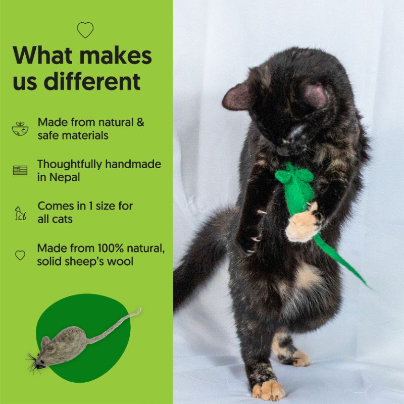 This wool mouse toy is thoughtfully handmade in Nepal by skilled artisan women and carefully assembled in the USA by...