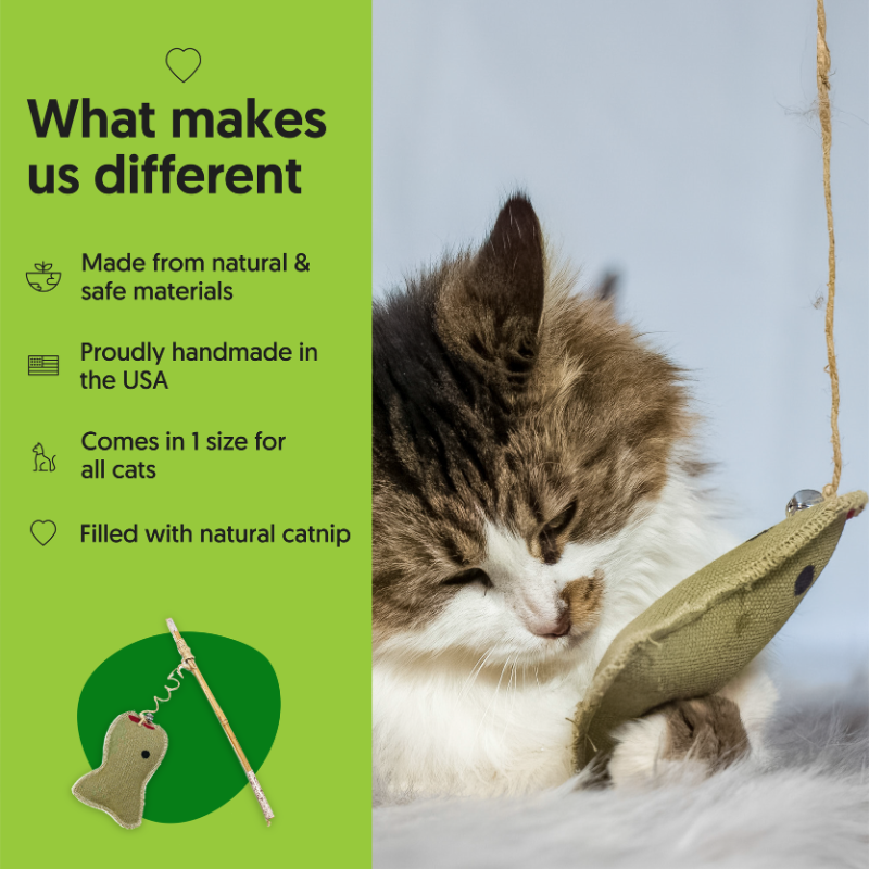 The Eco-Cat Fisher is your cat’s go-to toy for interactive, eco-conscious play. Handmade in the USA using durable natural hemp...